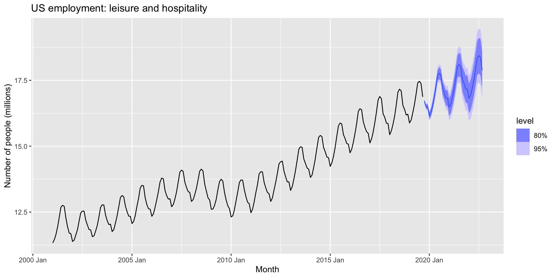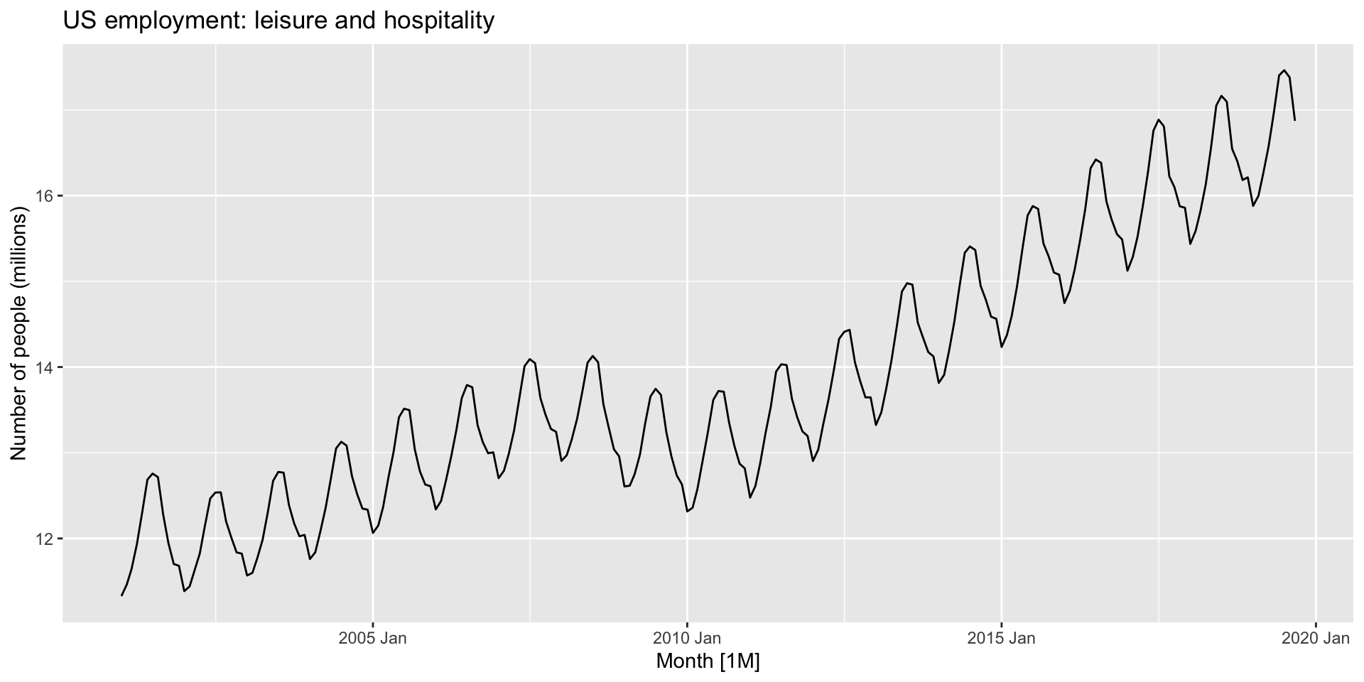 us_employment from fpp3.Title=="Leisure and Hospitality" and year(Month) > 2000
